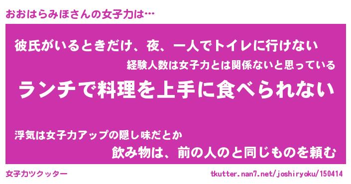 | 恥ずかしいあだ名 | 『プリティーおおはらみほ』『おおっちょ』 |