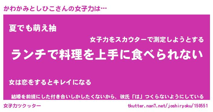 | 肩書あだ名 | 『かわかみとしひこ店長』 |