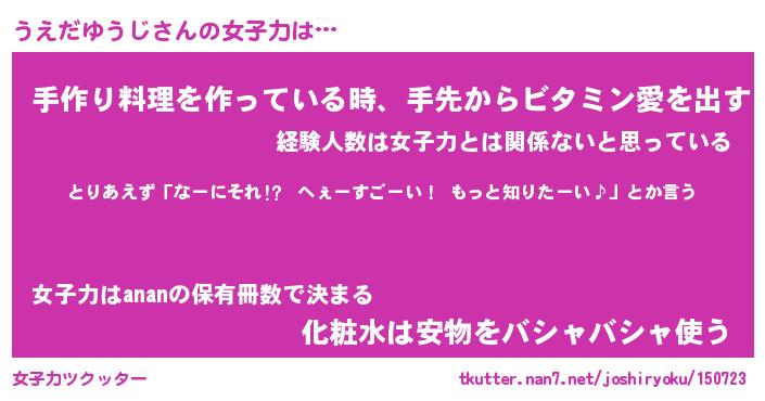 | 恥ずかしいあだ名 | 『プリティーうえだゆうじ』『うえっちょ』 |