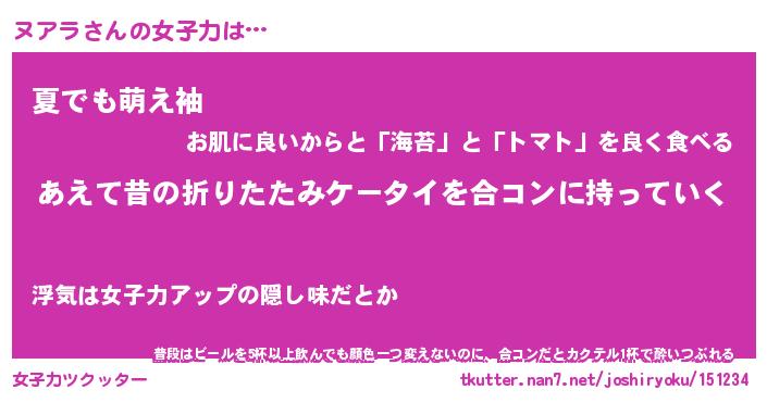 | ヘコむあだ名 | 『ヌアにー』『つくし』『ヌアお』 |
