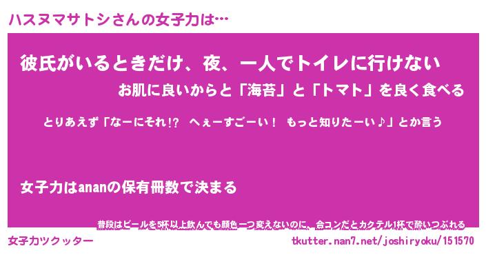 | 肩書あだ名 | 『ハスヌマサトシ御曹司』 |