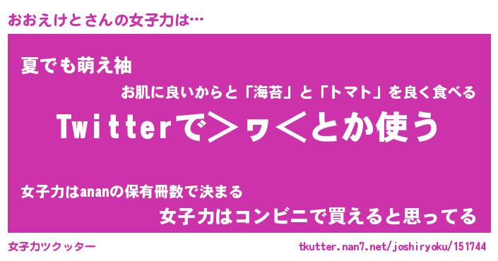 | ファンタジー風あだ名 | 『オオフェル』『エターナルオオエケトー』 |