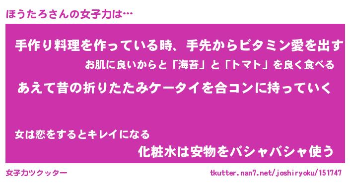 | ヘコむあだ名 | 『ほうにゅー』『つくし』『ほうっぺ』 |