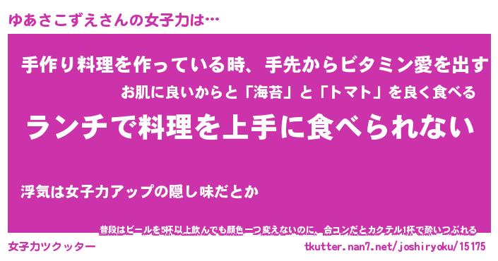 | ヘコむあだ名 | 『ゆあっふぃ~』『豆乳』『ゆあっ子』 |