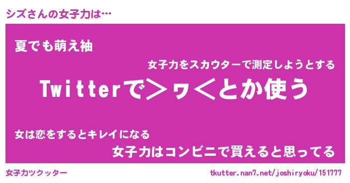 | ファンタジー風あだ名 | 『シズフェル』『エターナルシズー』 |
