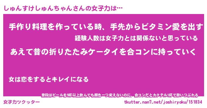 | 恥ずかしいあだ名 | 『プリティーしゅんすけしゅんちゃん』 |