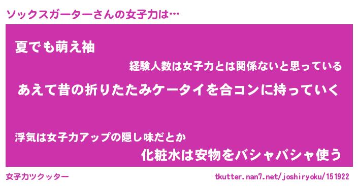 | 胡散臭い通販商品みたいなあだ名 | 『必ず成功する霊験あらたかなお札…その名も「ソックスガーター」』 |