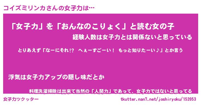 | 恥ずかしいあだ名 | 『プリティーコイズミリンカ』『コイちん』 |