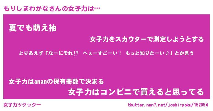 | ヘコむあだ名 | 『もりもー』『なまこ酢』『もりを』 |