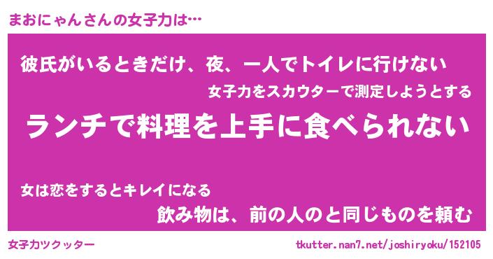 | ヘコむあだ名 | 『まおっふぃ~』『豆乳』『まおっぺ』 |