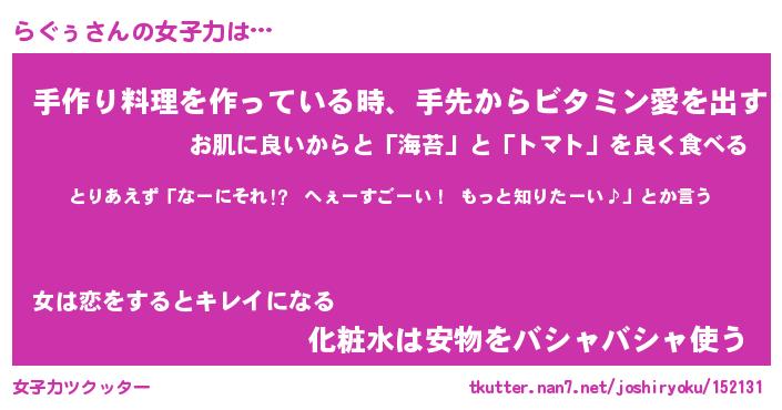| 恥ずかしいあだ名 | 『プリティーらぐぅ』『らぐっちょ』 |