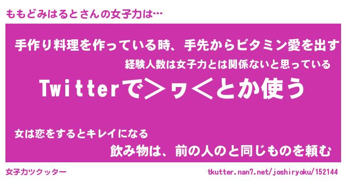 | ヘコむあだ名 | 『ももにゅー』『つくし』『ももっぺ』 |