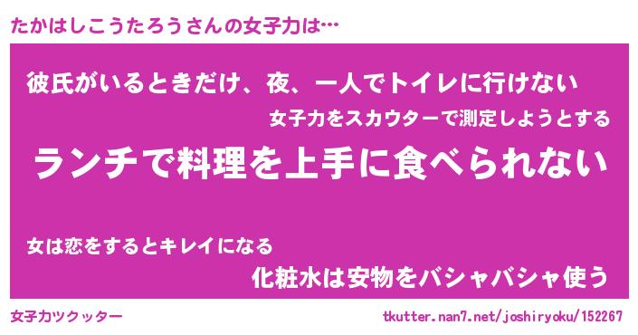 | ヘコむあだ名 | 『たかふぇ~』『つくし』『たかお』 |