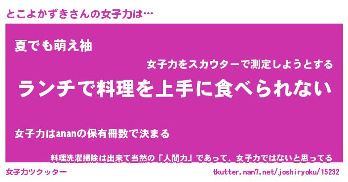 | ヘコむあだ名 | 『とこっふぃ~』『なまこ酢』 |