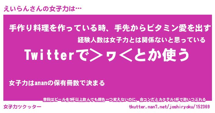 | ヘコむあだ名 | 『えいにゅー』『つくし』『えいを』 |