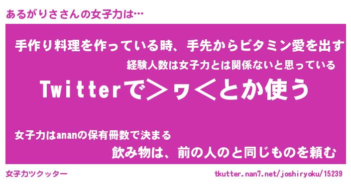 | ヘコむあだ名 | 『あるっふぃ~』『つくし』 |