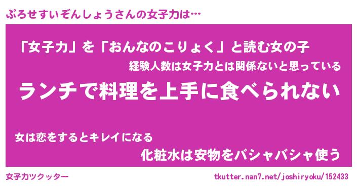 ぷろせすいぞんしょうさんの女子力をツクッター!