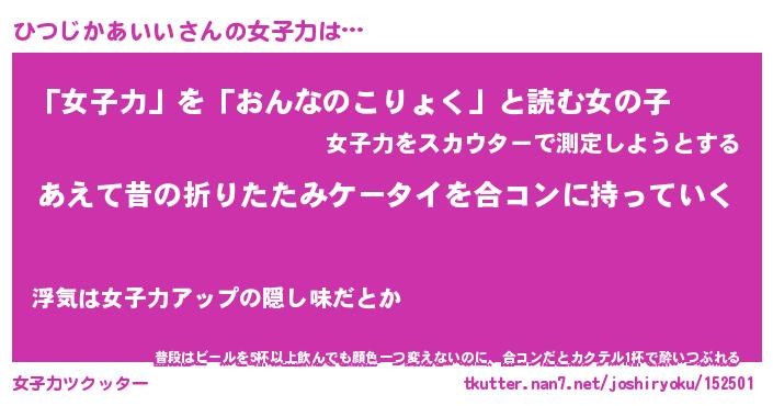 | ヘコむあだ名 | 『ひつっふぃ~』『豆乳』『ひつを』 |