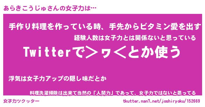 | 恥ずかしいあだ名 | 『プリティーあらきこうじゅ』『あらちん』 |