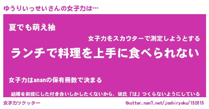 | ヘコむあだ名 | 『ゆうにー』『牛乳』『ゆうぷりん』 |
