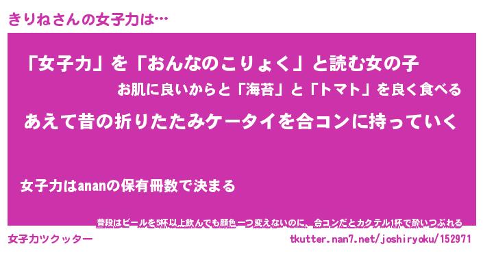 | ヘコむあだ名 | 『きりにー』『つくし』『きりっ子』 |