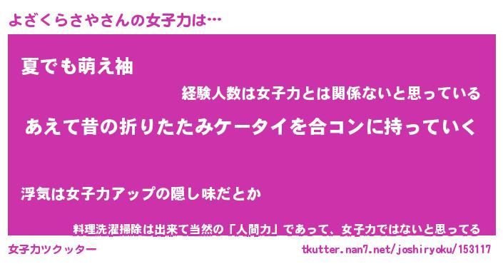 | 恥ずかしいあだ名 | 『プリティーよざくらさや』『よざっちょ』 |