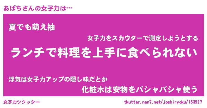 | ファンタジー風あだ名 | 『アパフェル』『エターナルアパチー』 |