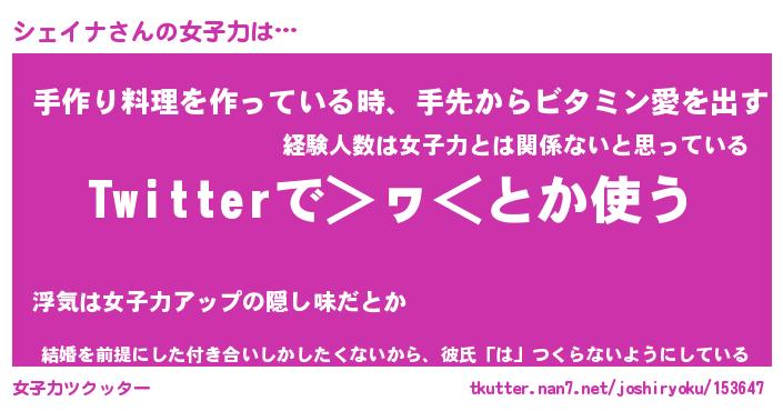 | 意味不明あだ名 | 『ペロリンシェイナ』『永久保存シェイナ』 |