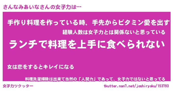 | ヘコむあだ名 | 『さんにー』『豆乳』『さんぷりん』 |