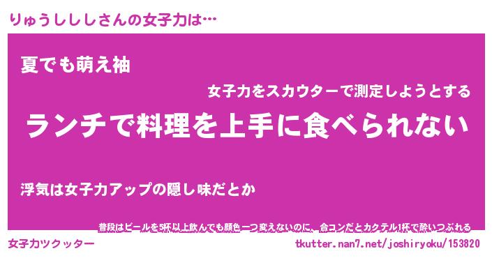 | 恥ずかしいあだ名 | 『プリティーりゅうししし』『りゅっちょ』 |