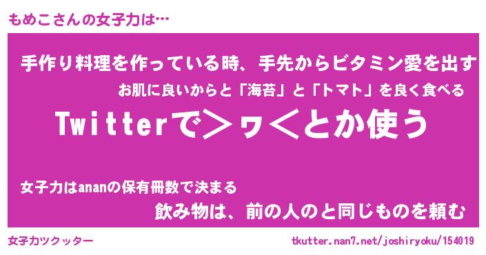| ファンタジー風あだ名 | 『モメフェル』『エターナルモメコー』 |