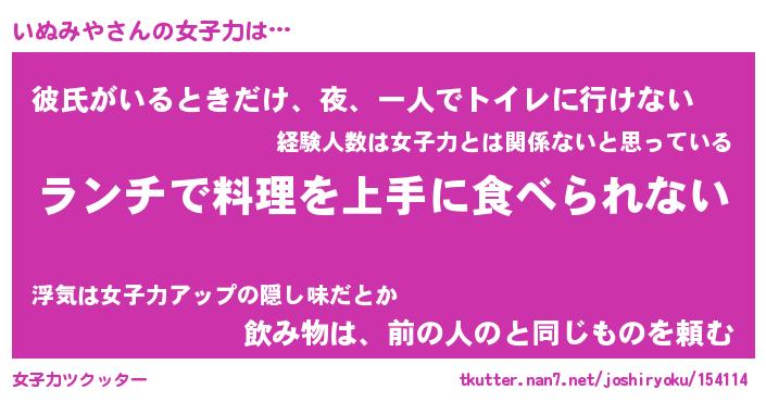 | ヘコむあだ名 | 『いぬもー』『豆乳』『いぬっちょ』 |