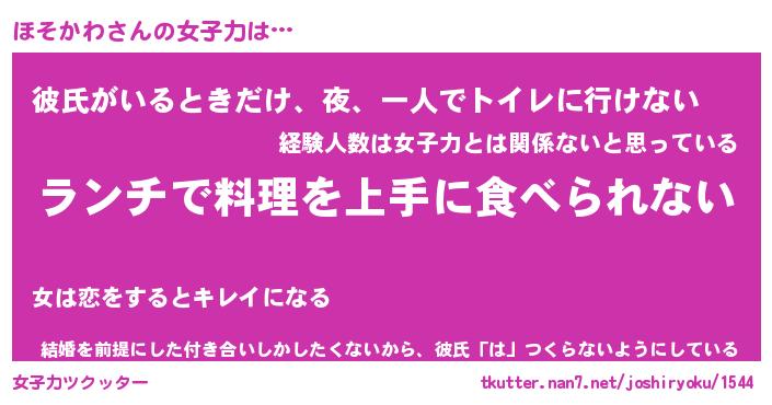 | ヘコむあだ名 | 『ほそもー』『豆乳』『ほそっぺ』 |