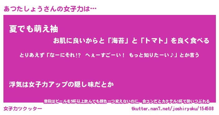 | ヘコむあだ名 | 『あつにゅー』『酢こんぶ』 |