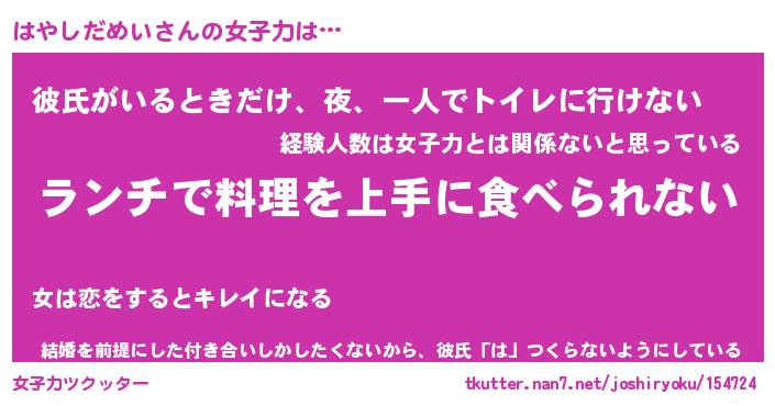 | 恥ずかしいあだ名 | 『プリティーはやしだめい』『はやっちょ』 |