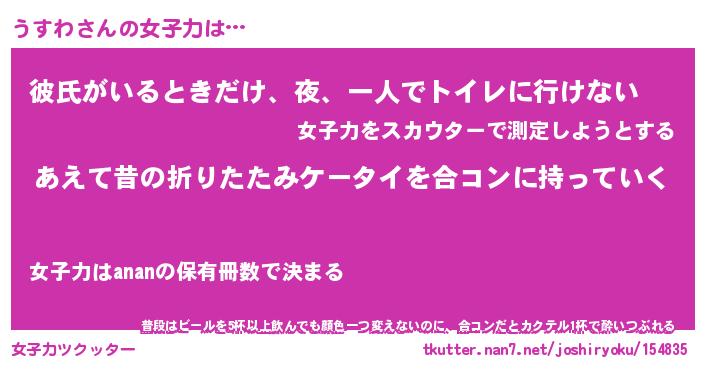 | 男性向けラノベタイトル風あだ名 | 『うすわの憂鬱』 |