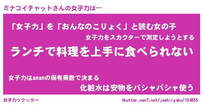 | ヘコむあだ名 | 『ミナふぇ~』『なまこ酢』 |