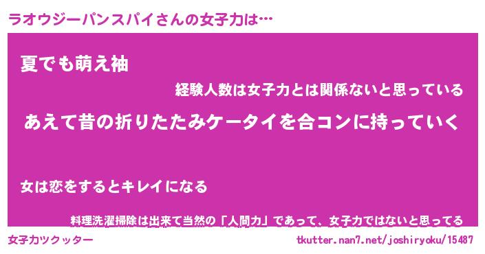 | ヘコむあだ名 | 『ラオふぇ~』『なまこ酢』 |