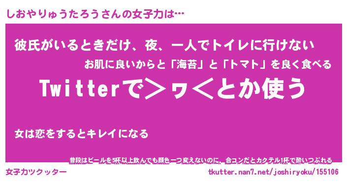 | 肩書あだ名 | 『しおやりゅうたろう御曹司』 |