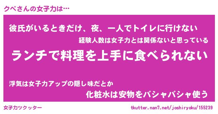 | ヘコむあだ名 | 『クペっふぃ~』『牛乳』『クペっ子』 |