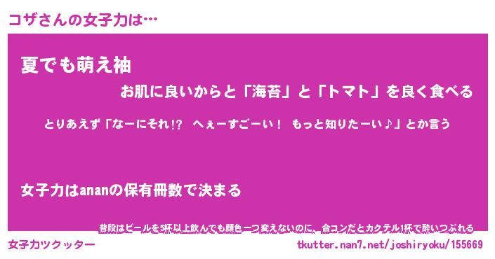 | ファンタジー風あだ名 | 『コザフェル』『エターナルコザー』 |