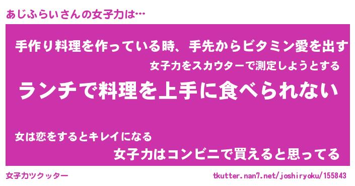 | 女子向けラノベタイトル風あだ名 | 『誰かこのあじふらいを説明してください! ~契約から始まるウェディング~』 |