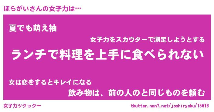 | ヘコむあだ名 | 『ほらにー』『なまこ酢』『ほら太郎』 |