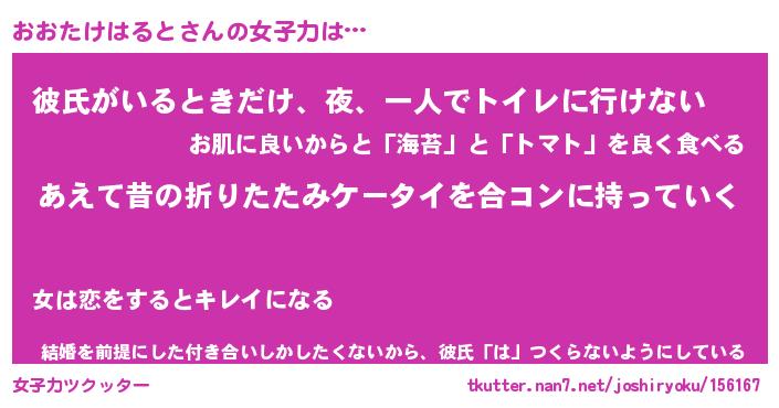 | 恥ずかしいあだ名 | 『プリティーおおたけはると』『おおちん』 |
