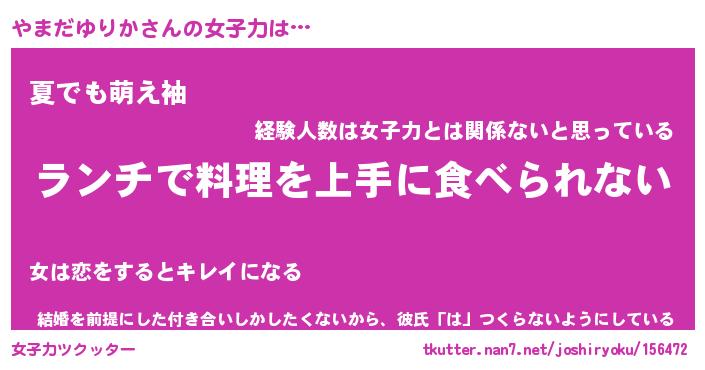| 恥ずかしいあだ名 | 『プリティーやまだゆりか』『やまっちょ』 |