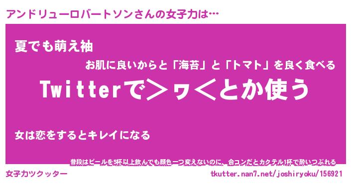 | 女子向けラノベタイトル風あだ名 | 『(仮)アンドリューロバートソンのやんごとなき事情』 |
