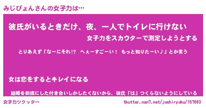 | ヘコむあだ名 | 『みじふぇ~』『豆乳』『みじを』 |