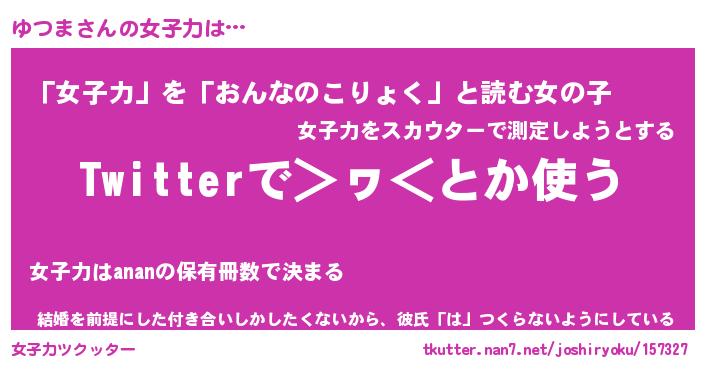 | 恥ずかしいあだ名 | 『プリティーゆつま』『ゆつっちょ』 |