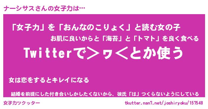 | 恥ずかしいあだ名 | 『プリティーナーシサス』『ナーっちょ』 |