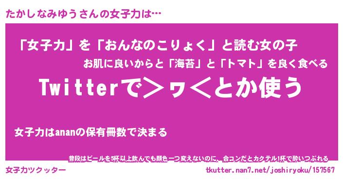 | 肩書あだ名 | 『たかしなみゆう社長』 |